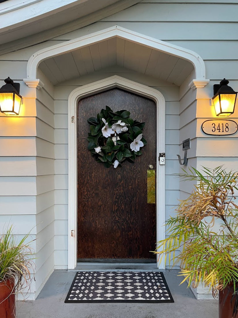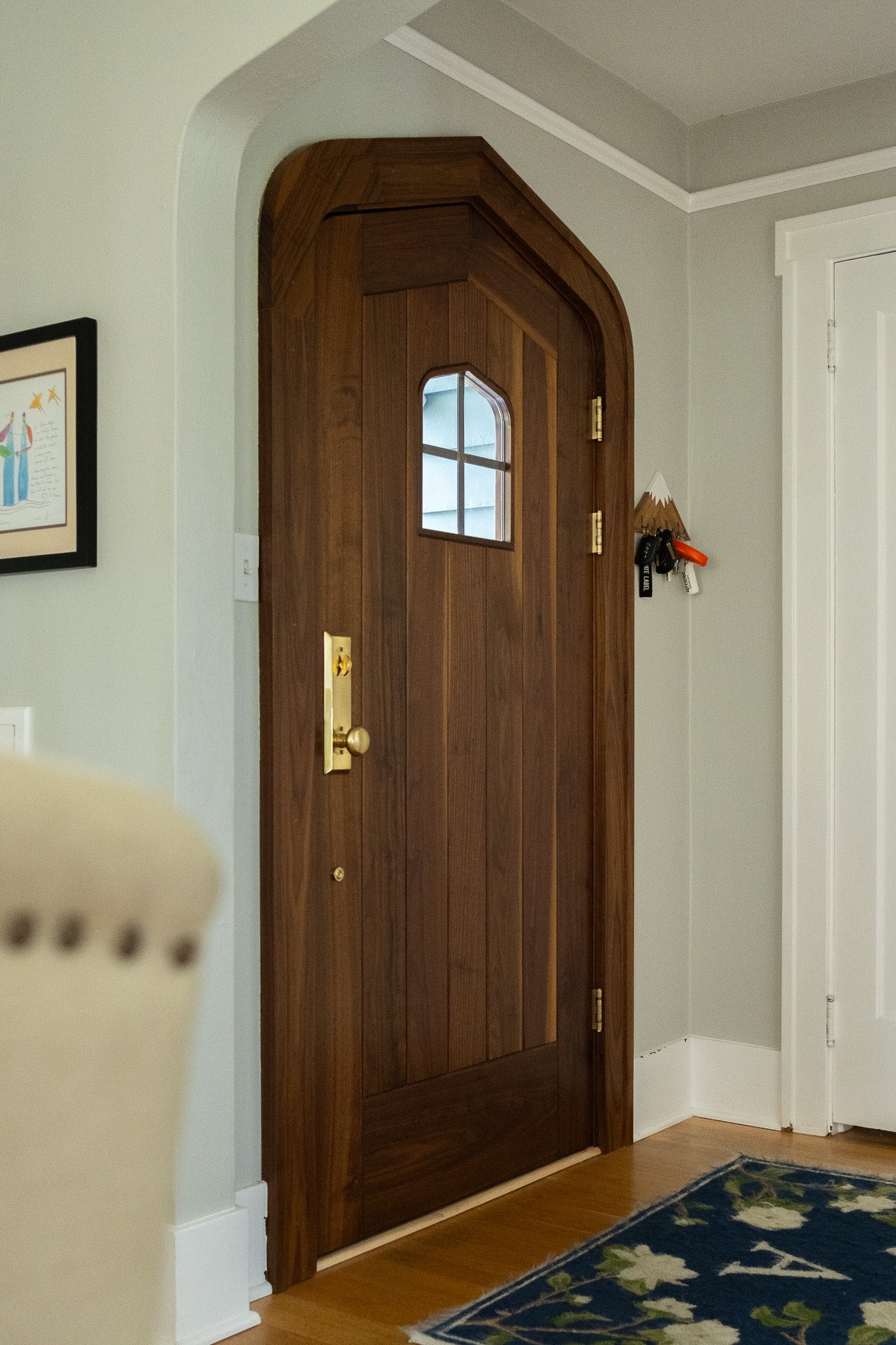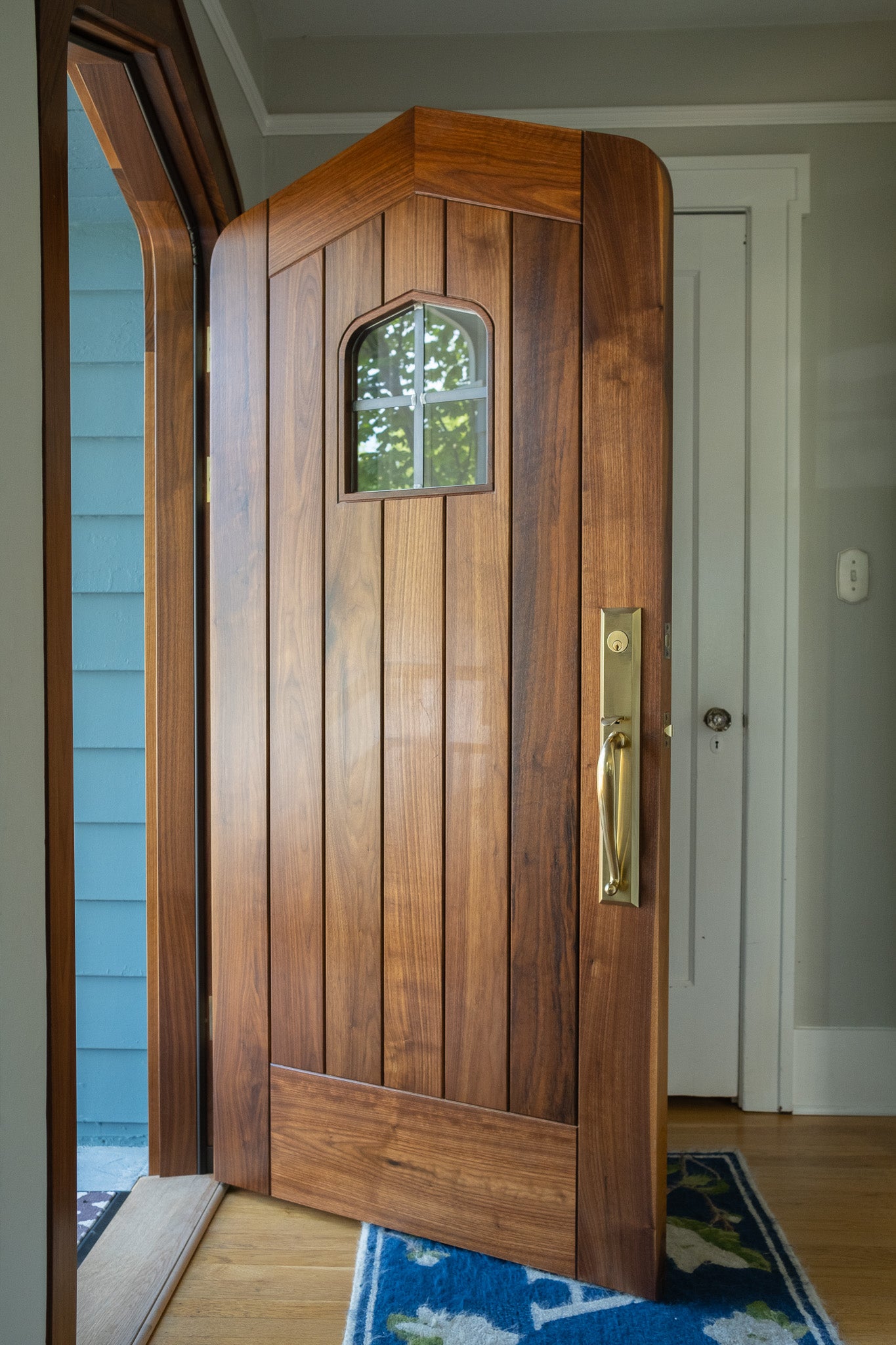 It was important to Tim to create a door with a more modern look within this traditional silhouette. Vertical flush planks gave him that vibe.
