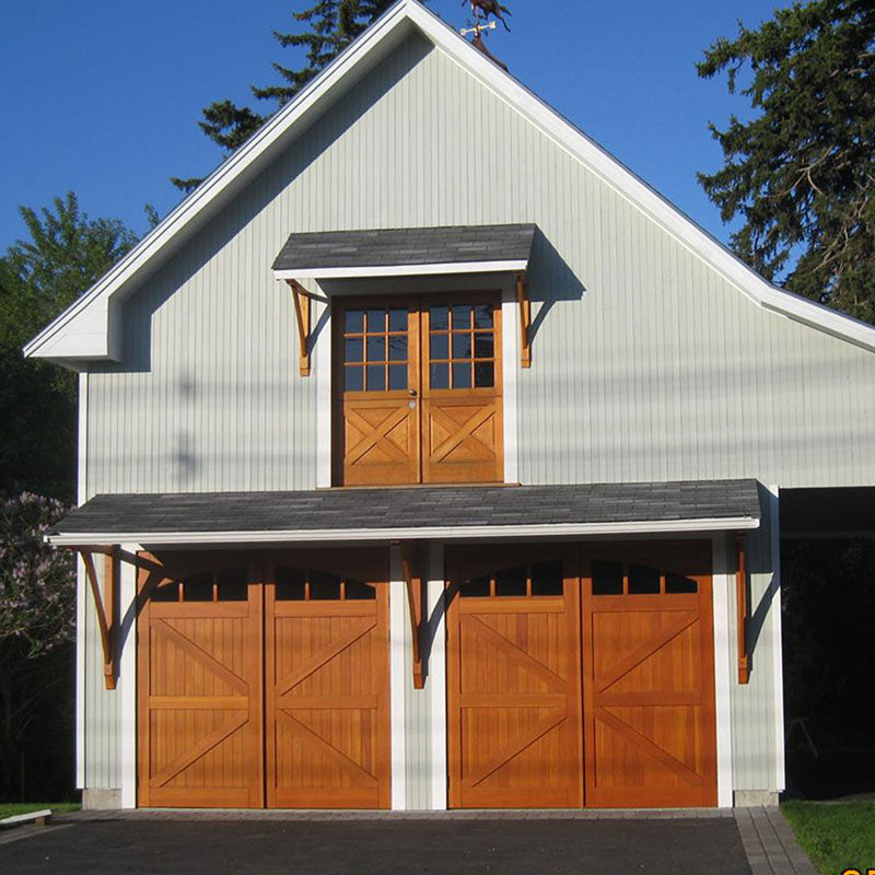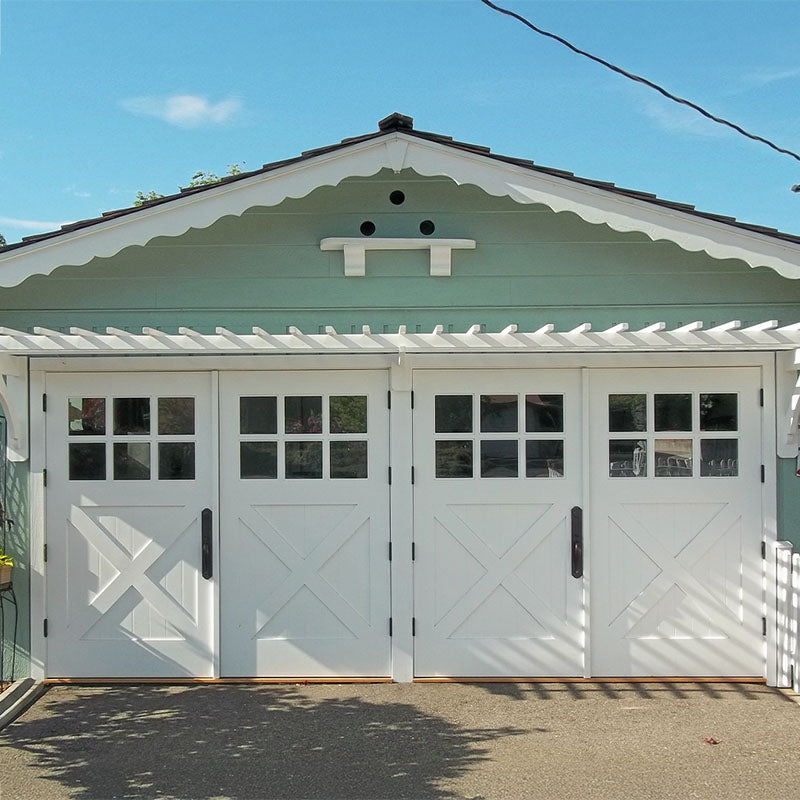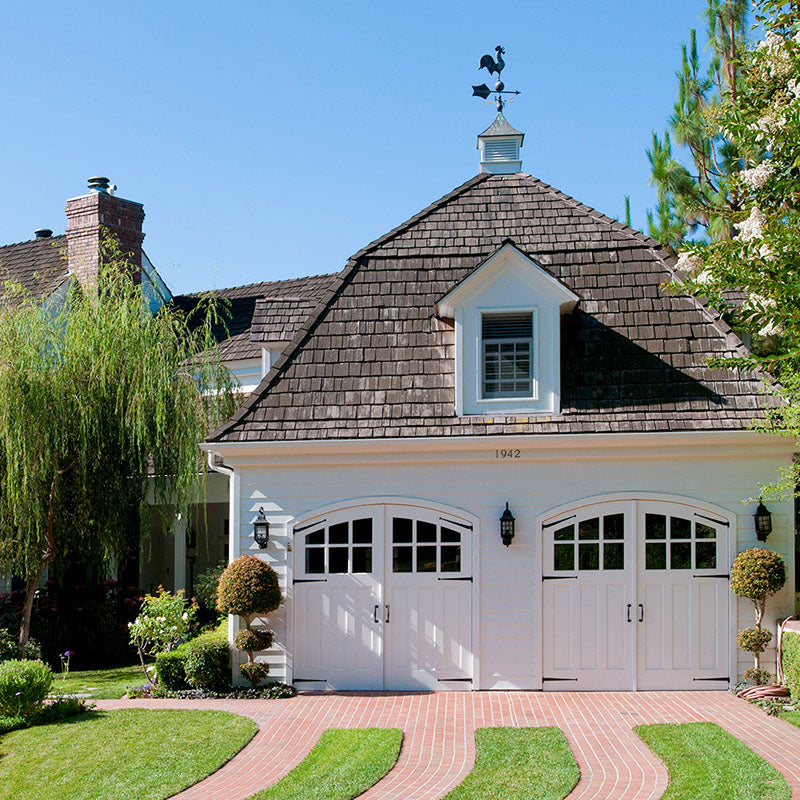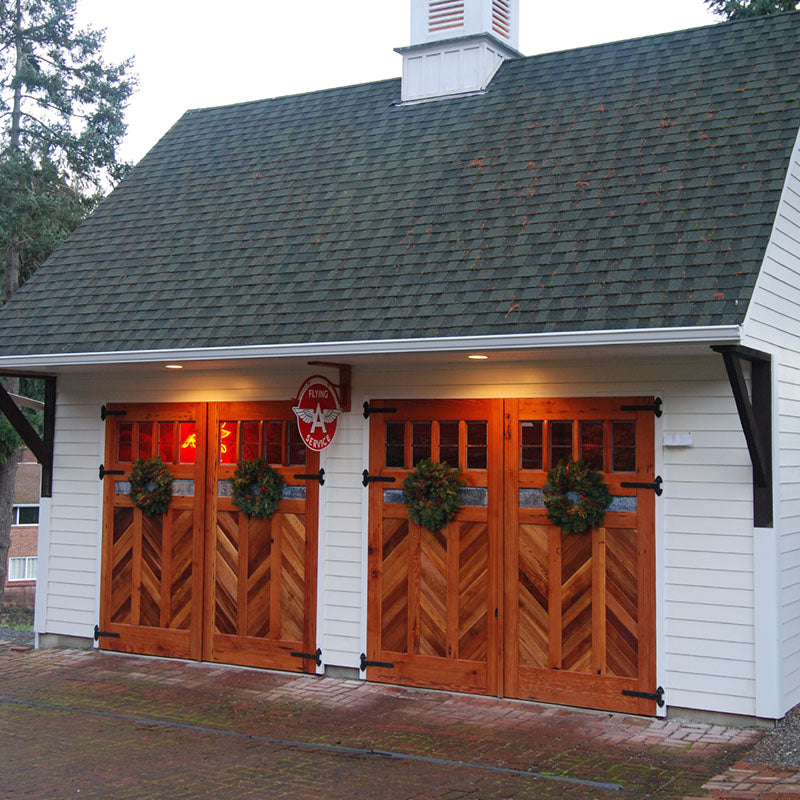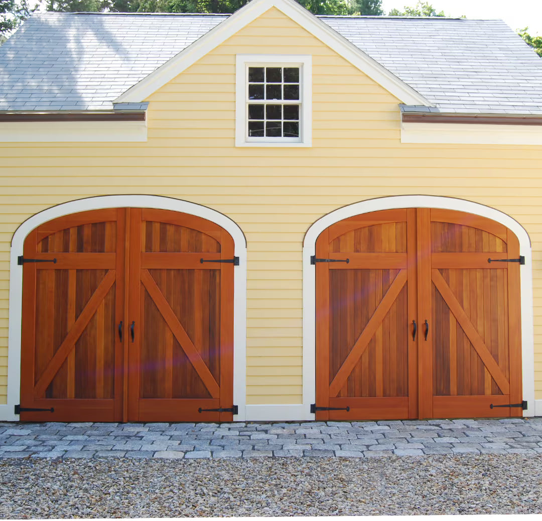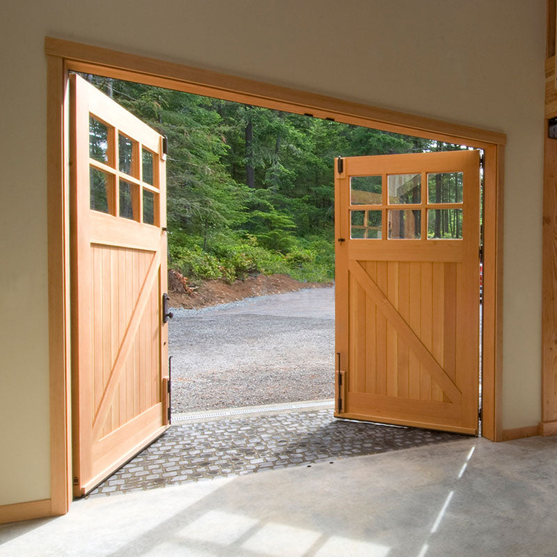 Unlike "carriage-style " roll-up doors that merely mimic the look with decorative overlays, true carriage garage doors swing outward on hinges—just like the original carriagehouse doors that protected horse-drawn carriages over a century ago. The resultis authentic character that faux wood panels simply can't replicate.