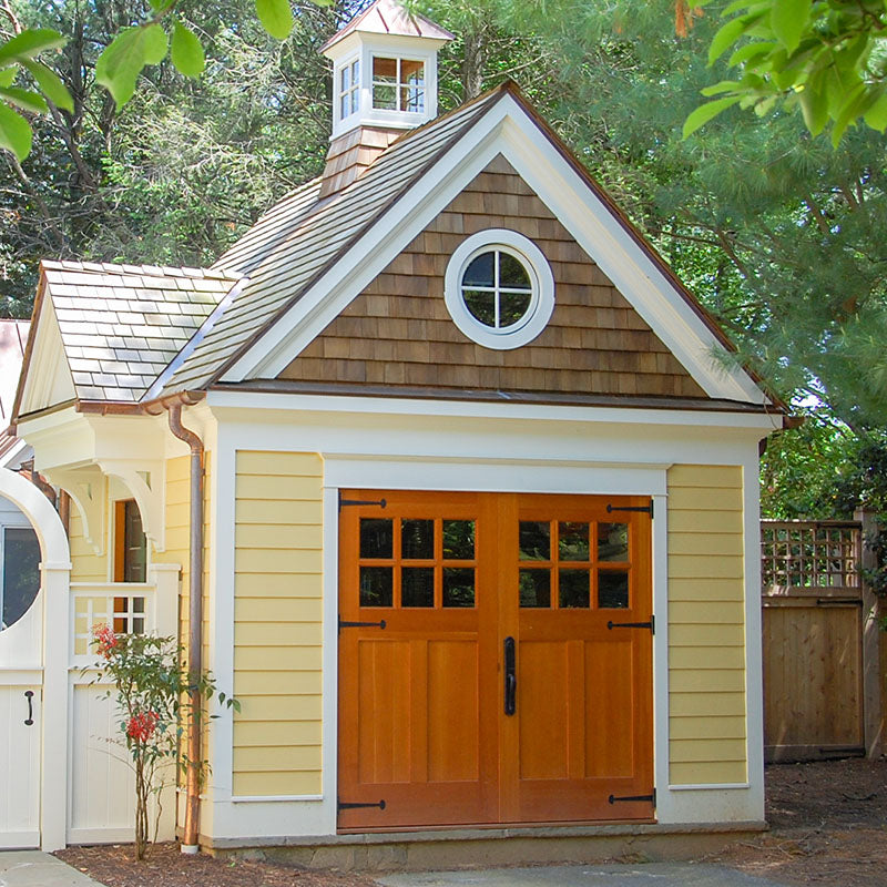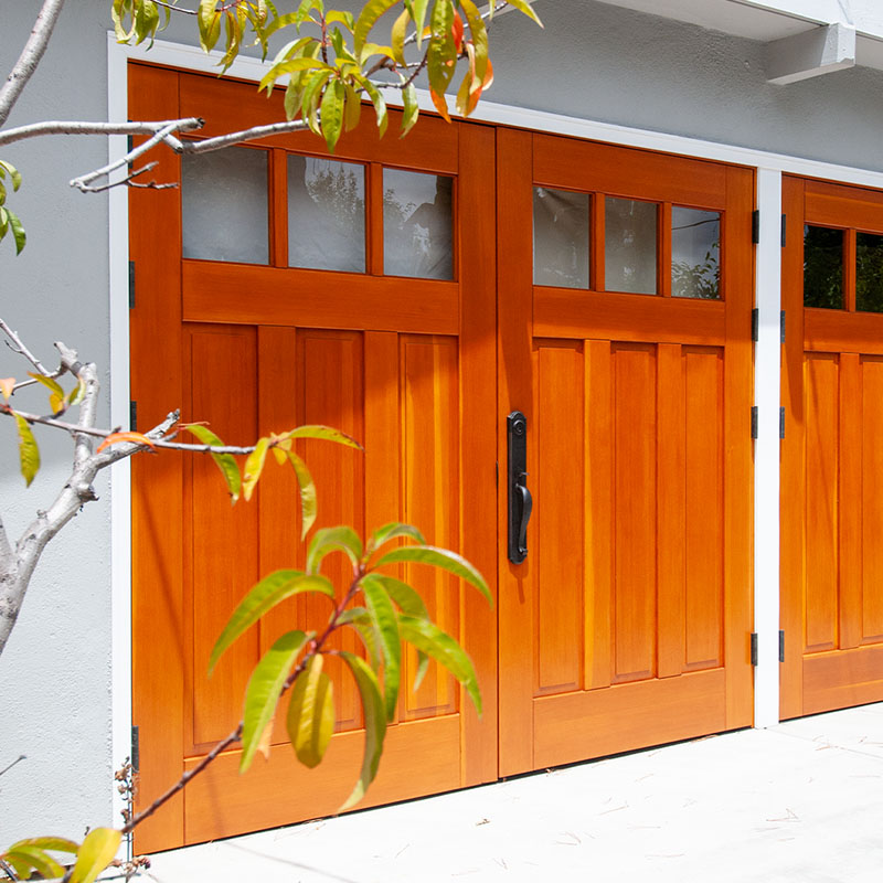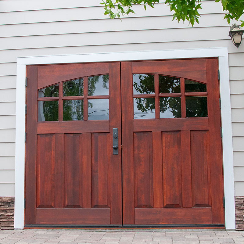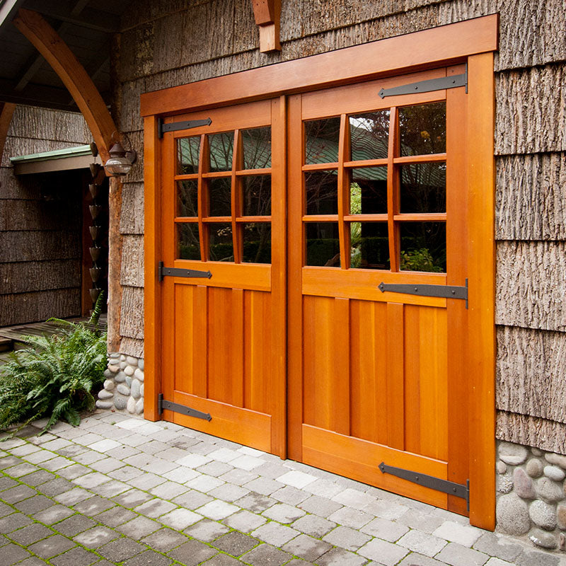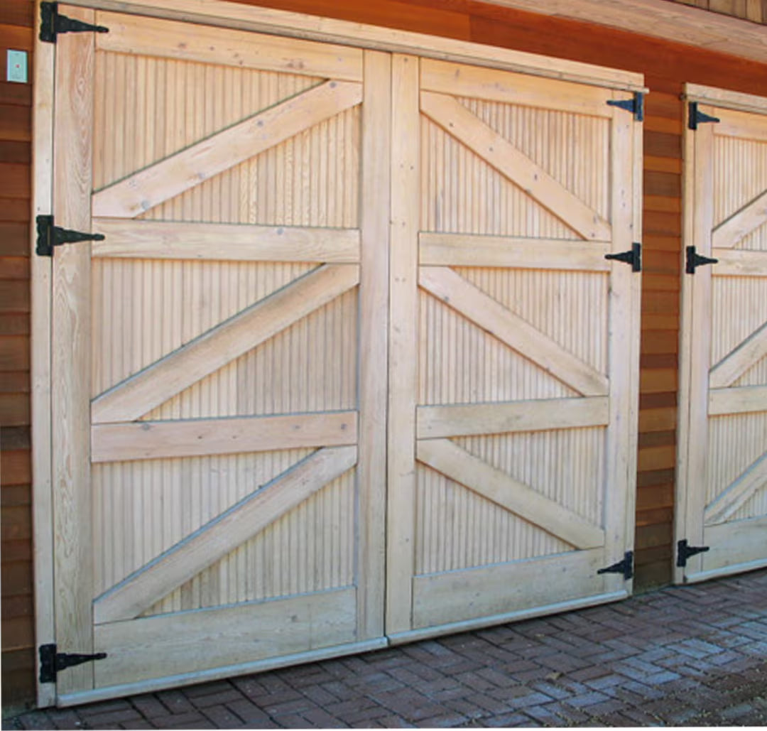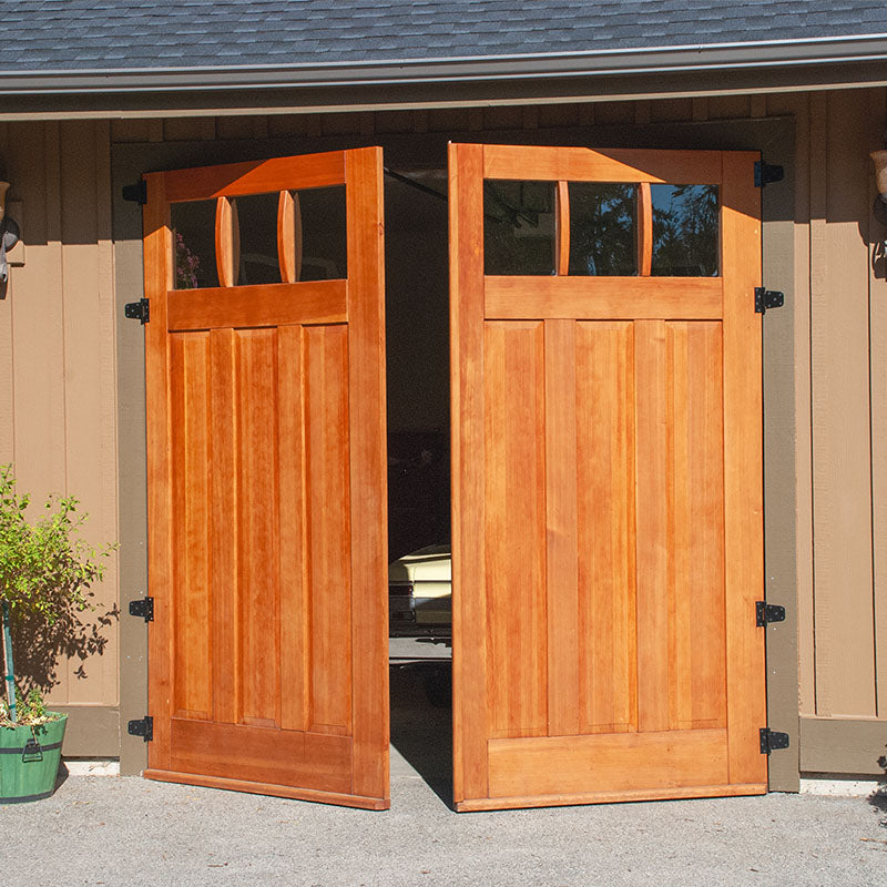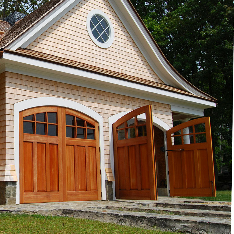 Unlike "carriage-style " roll-up doors that merely mimic the look with decorative overlays, true carriage garage doors swing outward on hinges—just like the original carriagehouse doors that protected horse-drawn carriages over a century ago. The resultis authentic character that faux wood panels simply can't replicate.