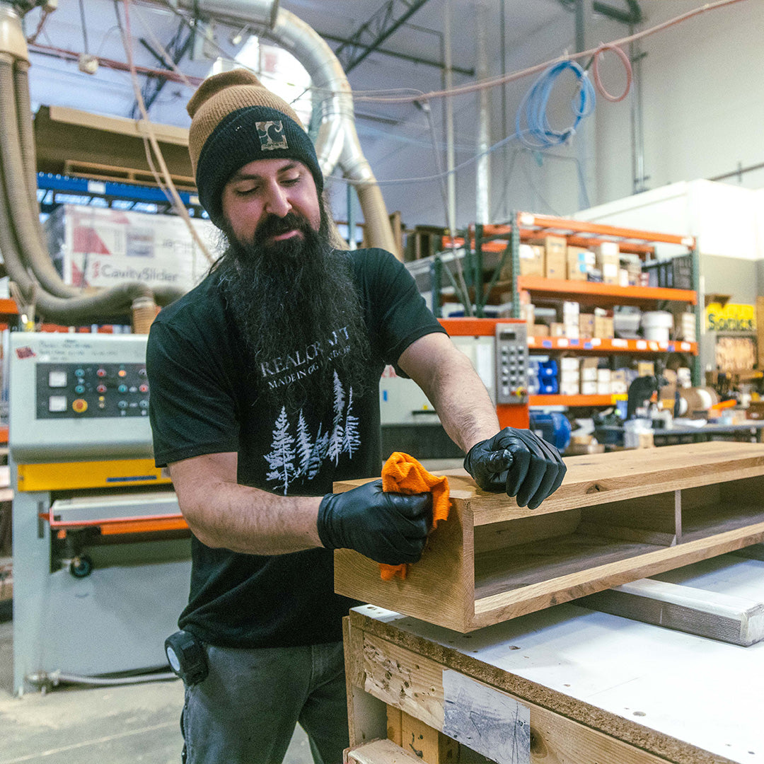 We offer seven finish options, including clear satin and six refined, naturalistic stains. These finishes highlight the unique character of each wood species while protecting their beauty.