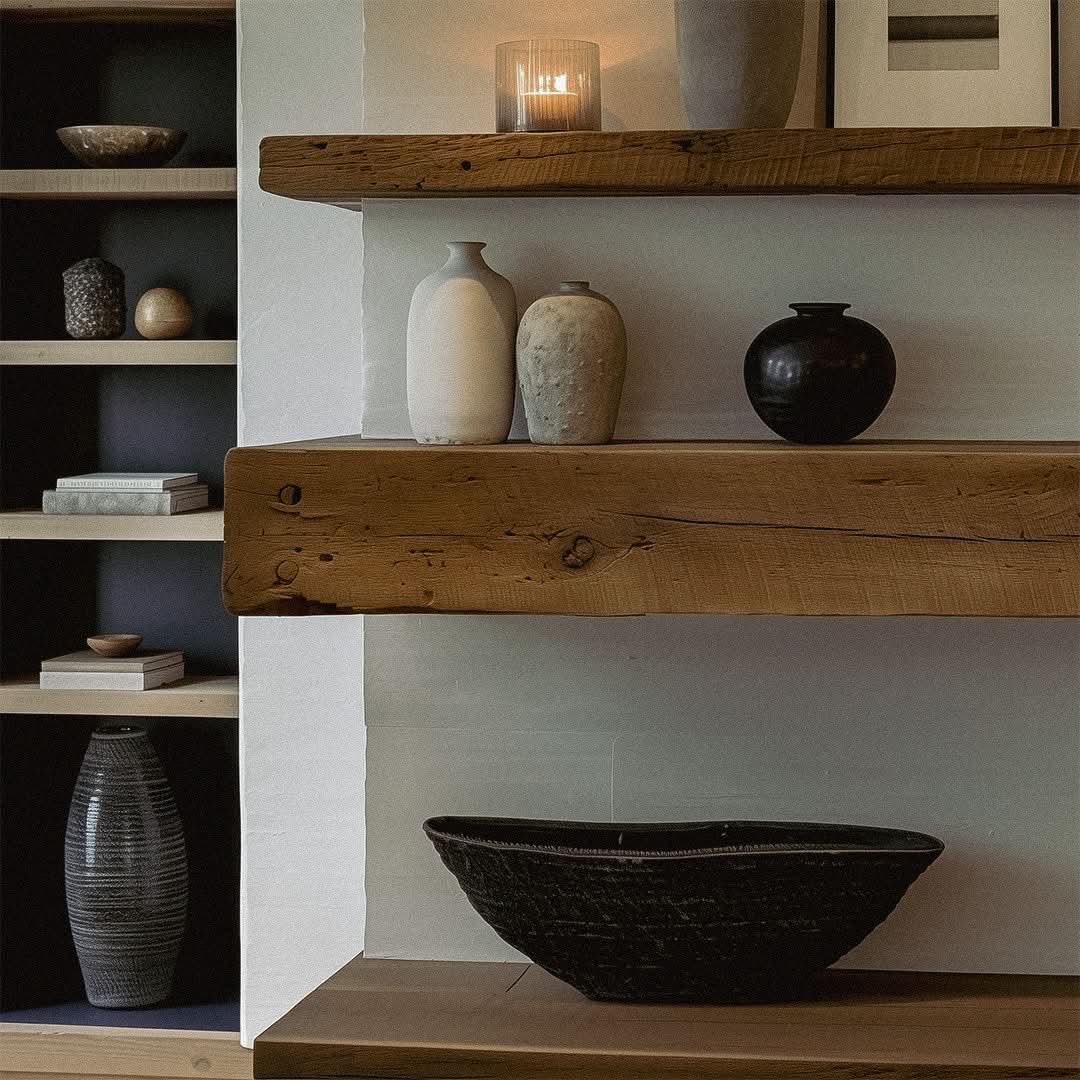 Elevate your hearth with our exquisite wood fireplace mantels. From sleek modern designs to rustic reclaimed beams with authentic textures, each piece transforms your fireplace into a stunning focal point. Available in 17 premium wood species with customizable dimensions to perfectly complement your unique space.