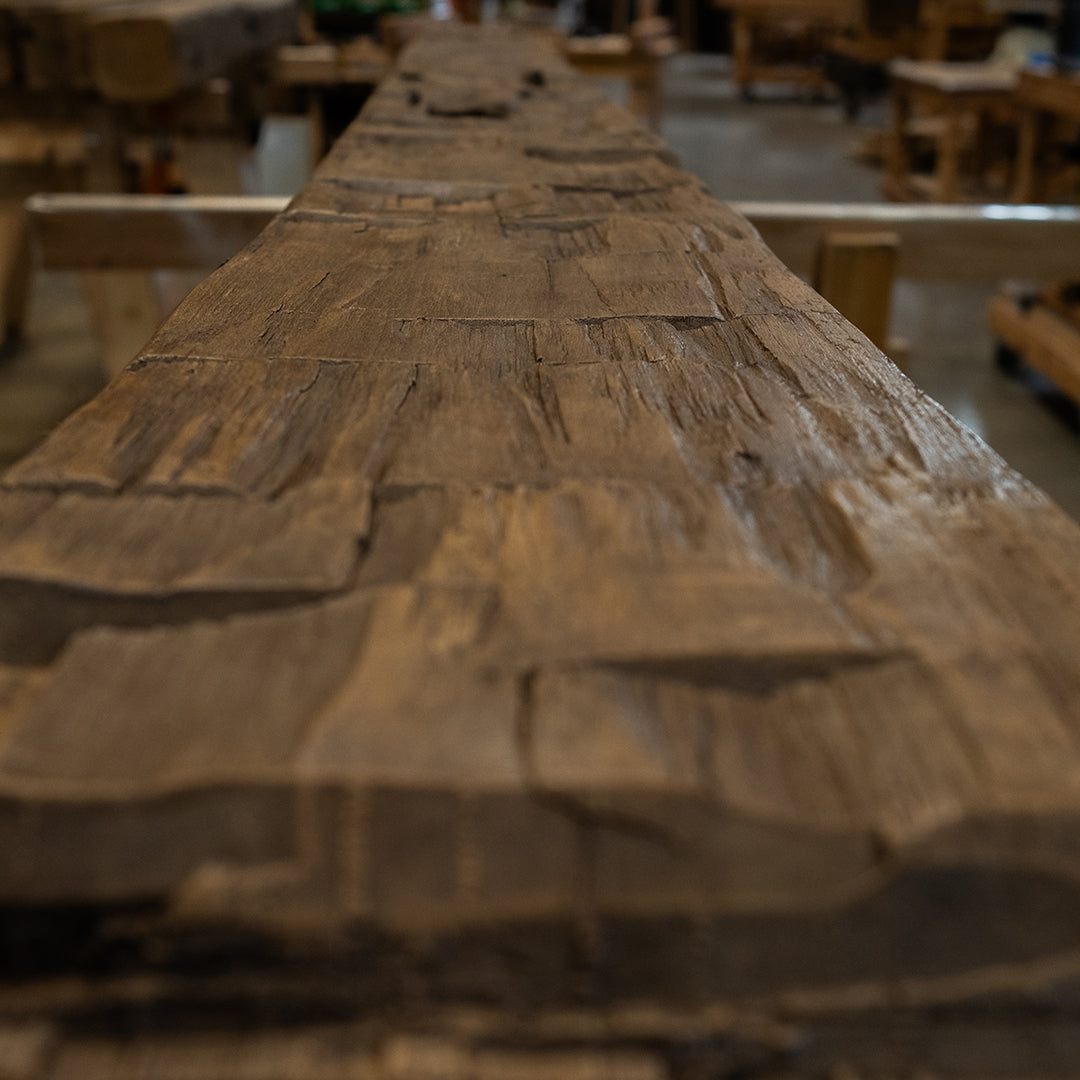 Hand Hewn: Created through the use of traditional tools, resulting in an uneven surface. Ideal for historic homes, or adding unmatched soul to any space.