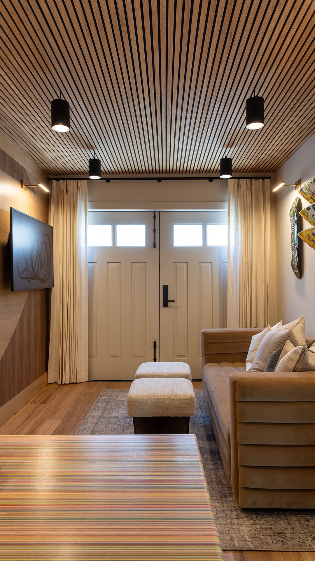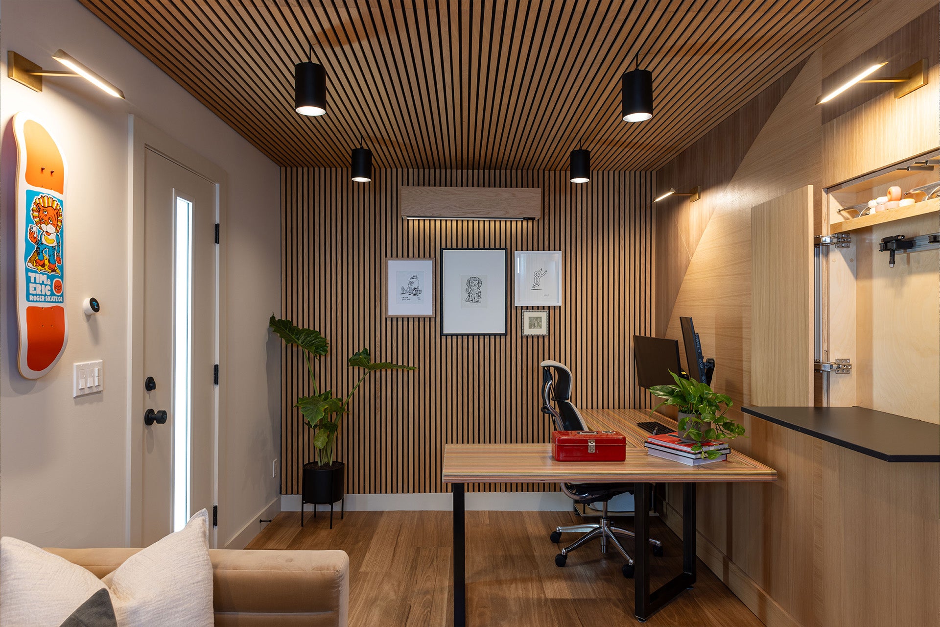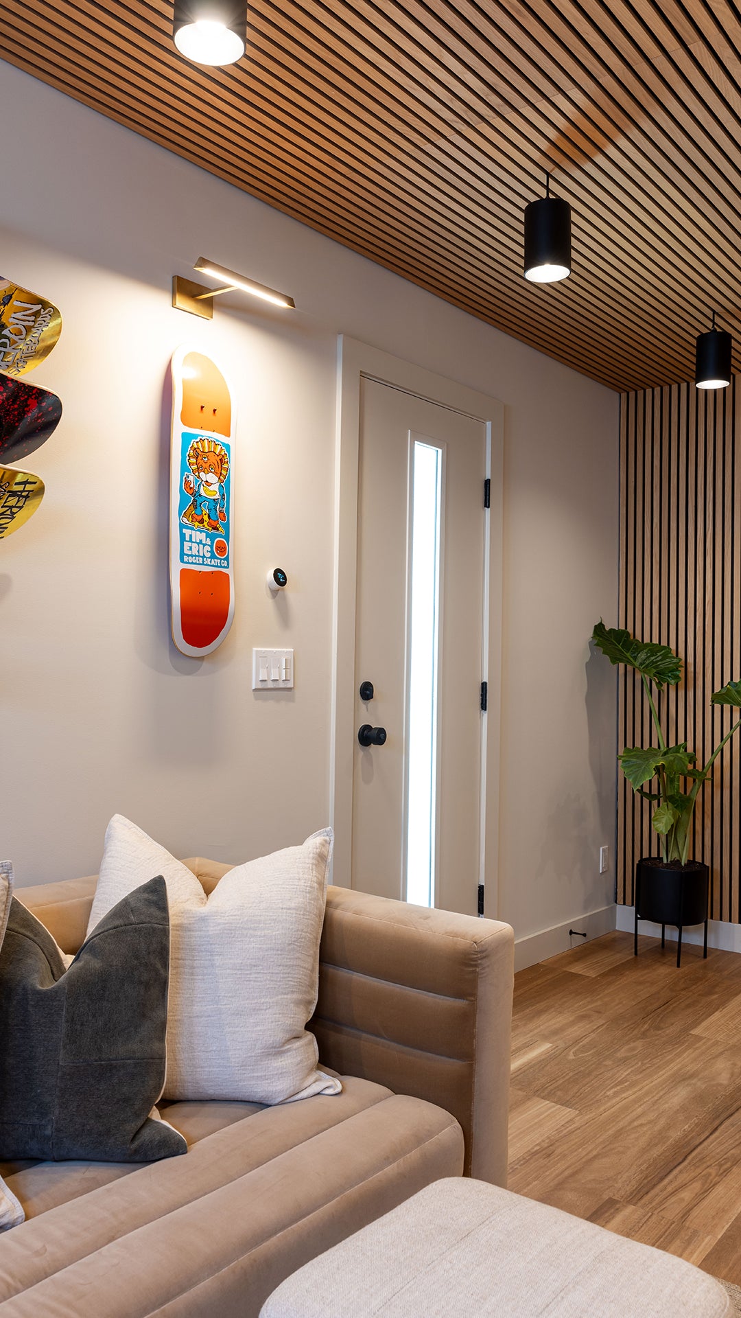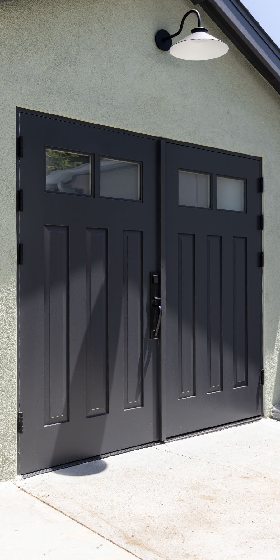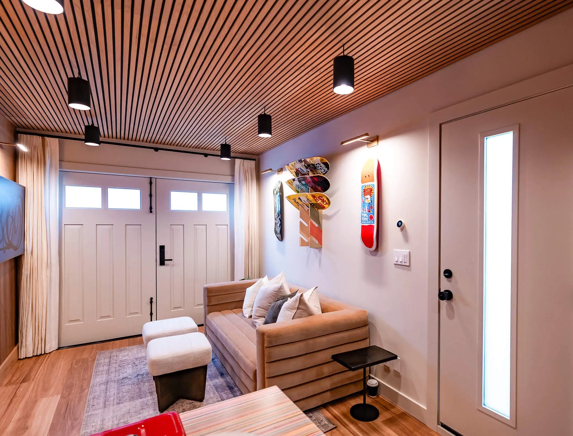 We’re thrilled to have been a part of HGTV show Property Brothers: Celebrity IOU. Celebrity IOU is a show where Jonathan and Drew help Hollywood A-listers express gratitude to the friends and colleagues who have positively impacted their lives by surprising them with home renovations. We were featured in an episode where pro skateboarding legend Tony Hawk surprised his good friend Tim with a detached garage renovation—turning it from a neglected garage into a comfortable, inspiring studio space. Our custom Craftsman style carriage doors gave the whole garage a facelift.